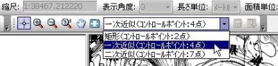 スキャニングラスターデータは紙や印刷時の歪み,スキャナー読み取り時の図面の傾きなどにより,正規化されたラスターデータとはなっていない。そのためコントロールポイント4点による一次近似(アファイン変換)レジスタ処理を行う必要がある。