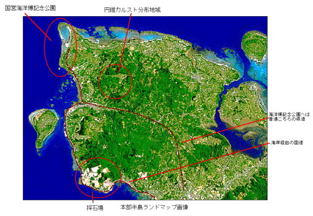 ←海洋博記念公園に行くとき,海岸周りの国道は通らない。←採石場があり,景観が悪いのと,運搬の大型トラックが多いから。