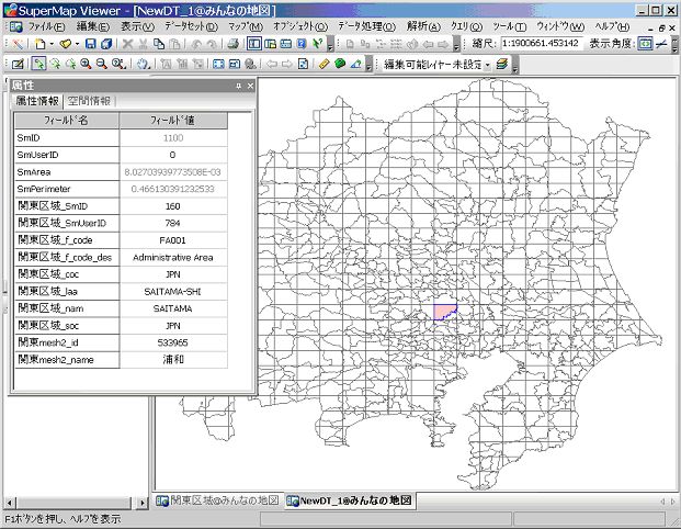 | 2.メッシュポリゴンを使ったクリッピング (Viewer/Express/Deskpro) 例2次メッシュによるクリッピング と2次メッシュを使用してデータセット関東区域を区分してみます。先ず関東区域とこの周辺の2次メッシュデータをオーバーレイさせます。 ![]() オーバーレイ解析機能により、ポリゴンを分割します。 ![]() |