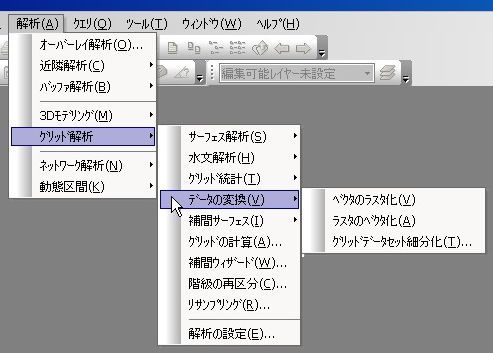 | 5.写真分類のツール グリッドデータセットを処理するツールは,メニューから解析/グリッド解析のツール群を利用します。 ![]() グリッド値を確認したい場合:サーフェイス解析サブメニューの最下段「マウスを用いて標高検索」ボタンを押すと,カーソル位置のグリッド値を読み取ることができます。 ![]() ![]() サブメニューは開きませんが,これ以外にグリッド計算や階級の再区分も利用します。使い方はマニュアル等で確認してください。 |