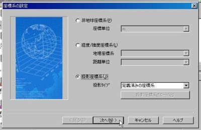地形図画像データをインポートするためのデータセットを作成する。『新規データソース』選択後,ここでの入力項目は,”データソースの名称”と”座標系”。 ← ここを参照