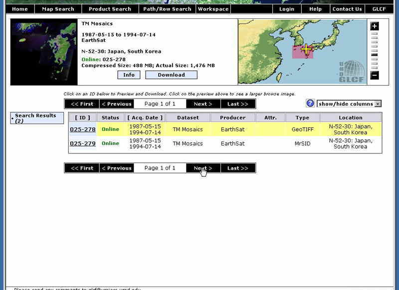 GLCF(ESDI) (メリーランド大学) のHPからダウンロード。以下のアドレスより。