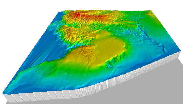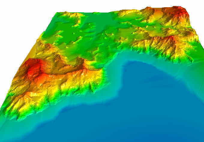 この処理がすむと,地形3Dが描けるようになる。以下3D地形図例を表示する。