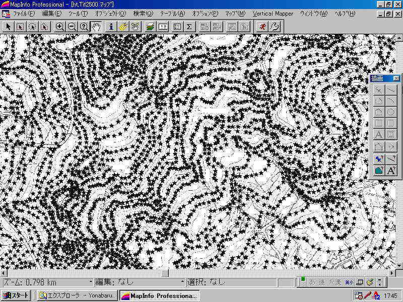 このデータを基にして,地形を3D表示するためのグッリドデータ(メッシュデータ)などを生成する。この作業はVeritical MapperというMapInfoのアドオンソフトを使った処理となるので,マニュアルを参照してほしい。